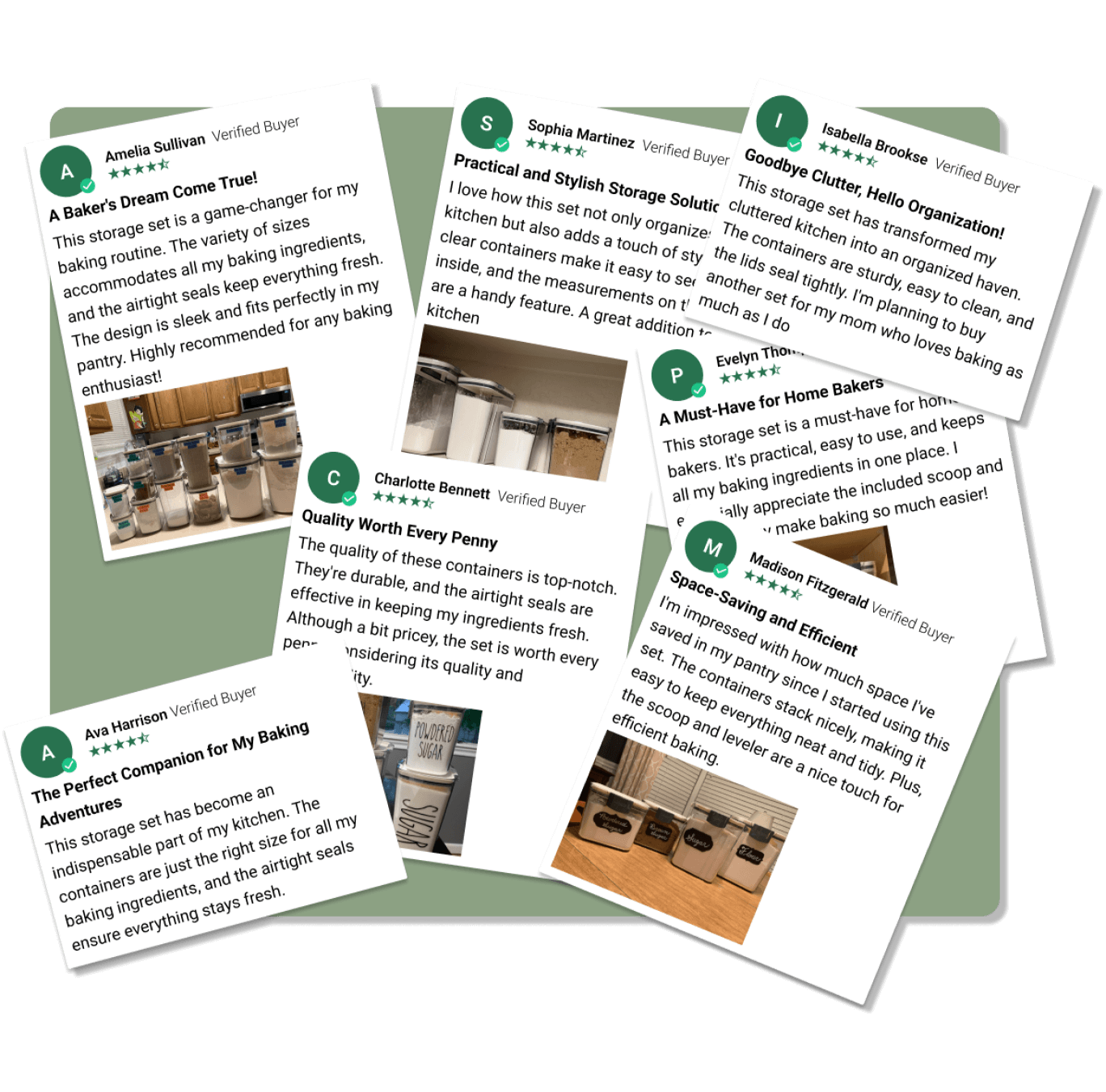 Rest assured knowing that our Baker's Storage Set comes with a reliable warranty and guarantee. We stand behind the quality and durability of our product, which is why we offer a five-year warranty and a 60-day money-back guarantee to give you peace of mind. NO QUESTIONS ASKED, if you have a problem with it or if it doesn't fit your pantry as expected, we'll be happy to give your money back.
